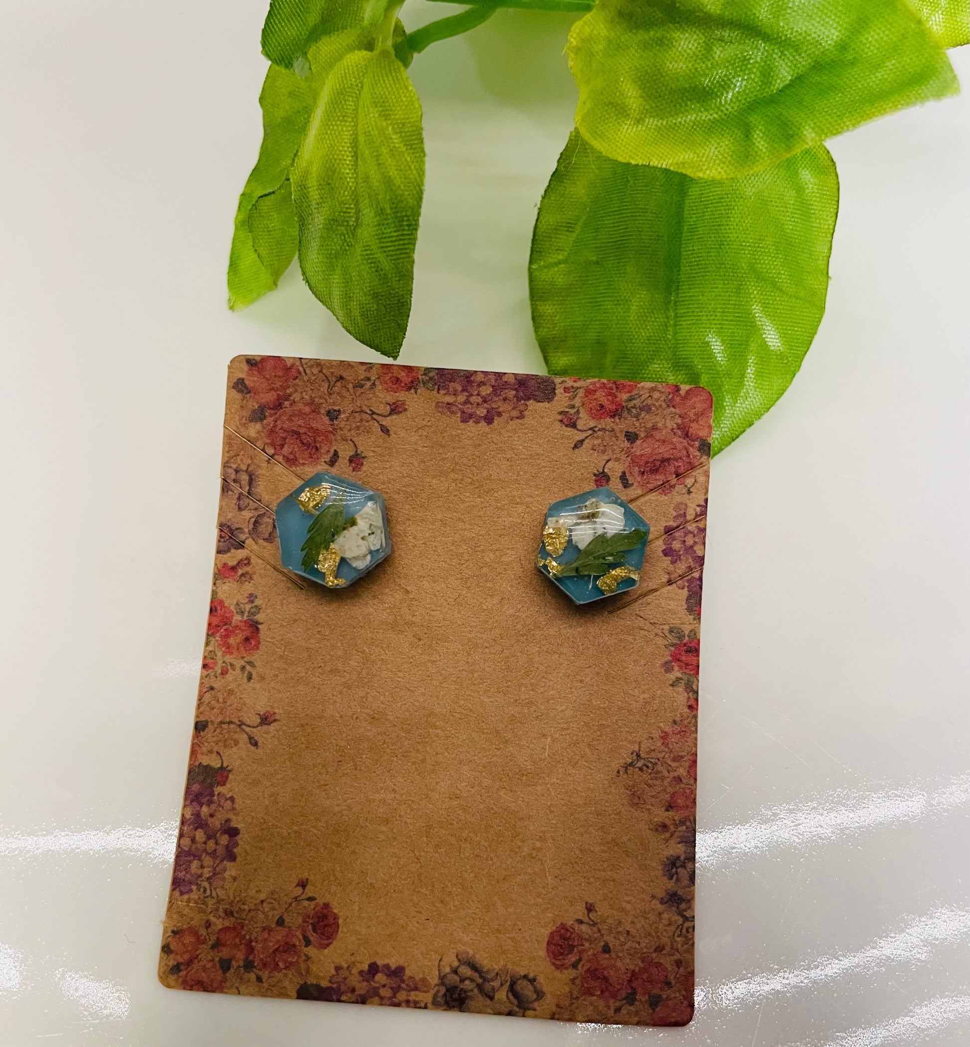 Blue Pressed Flower Stud